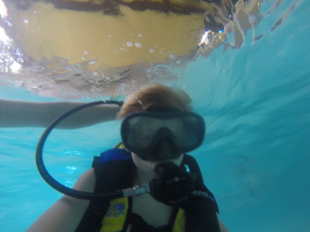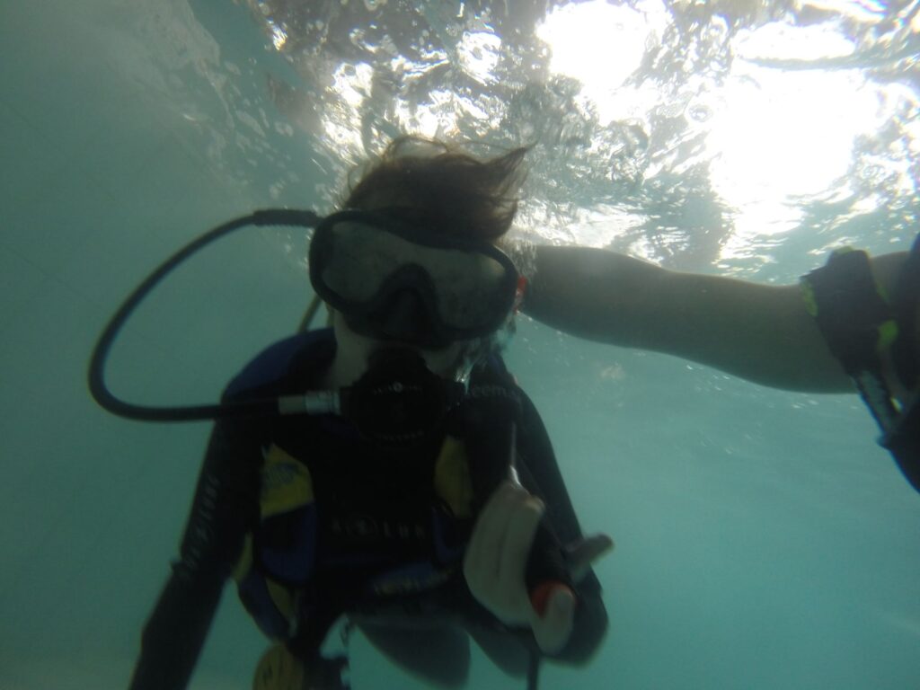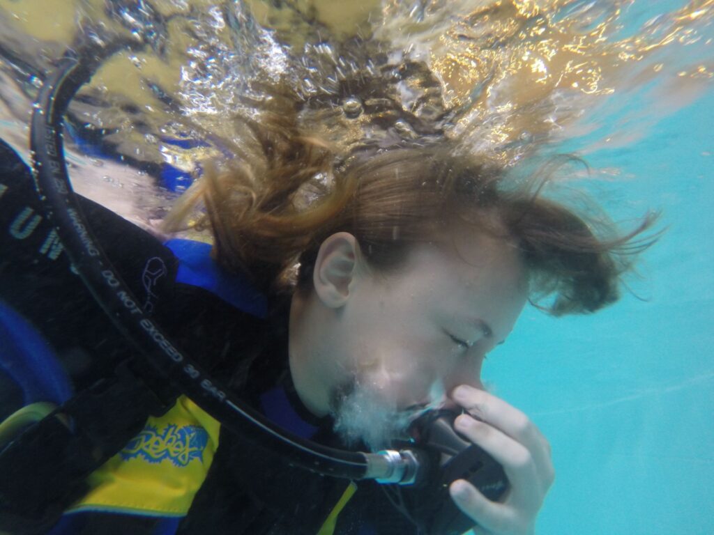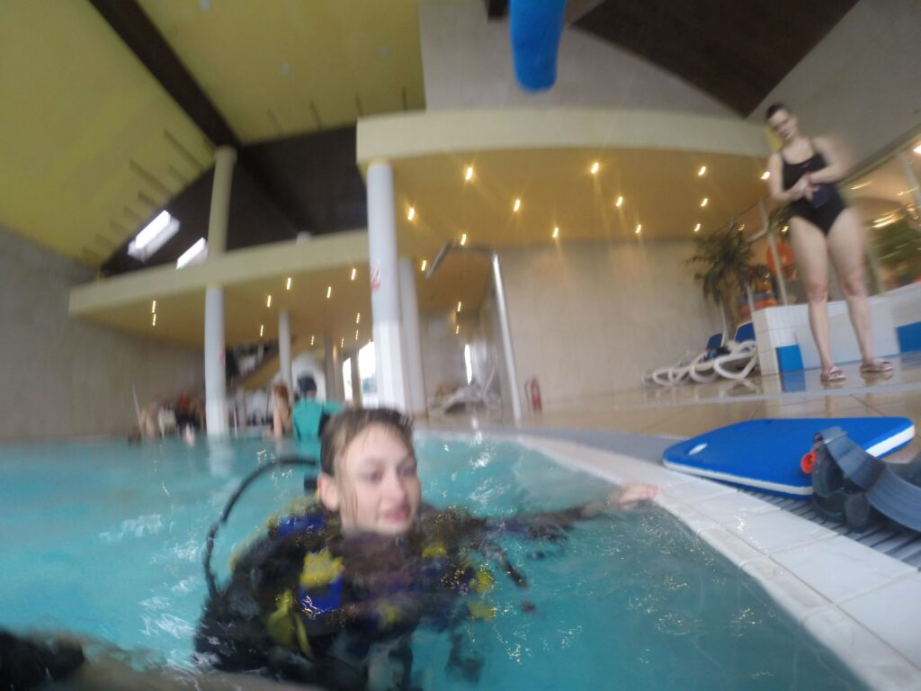 • Pierwszy wdech pod wodą w pełnym sprzęcie nurkowym